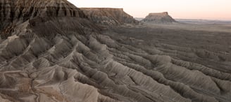 Rugged mountains and riverbeds.